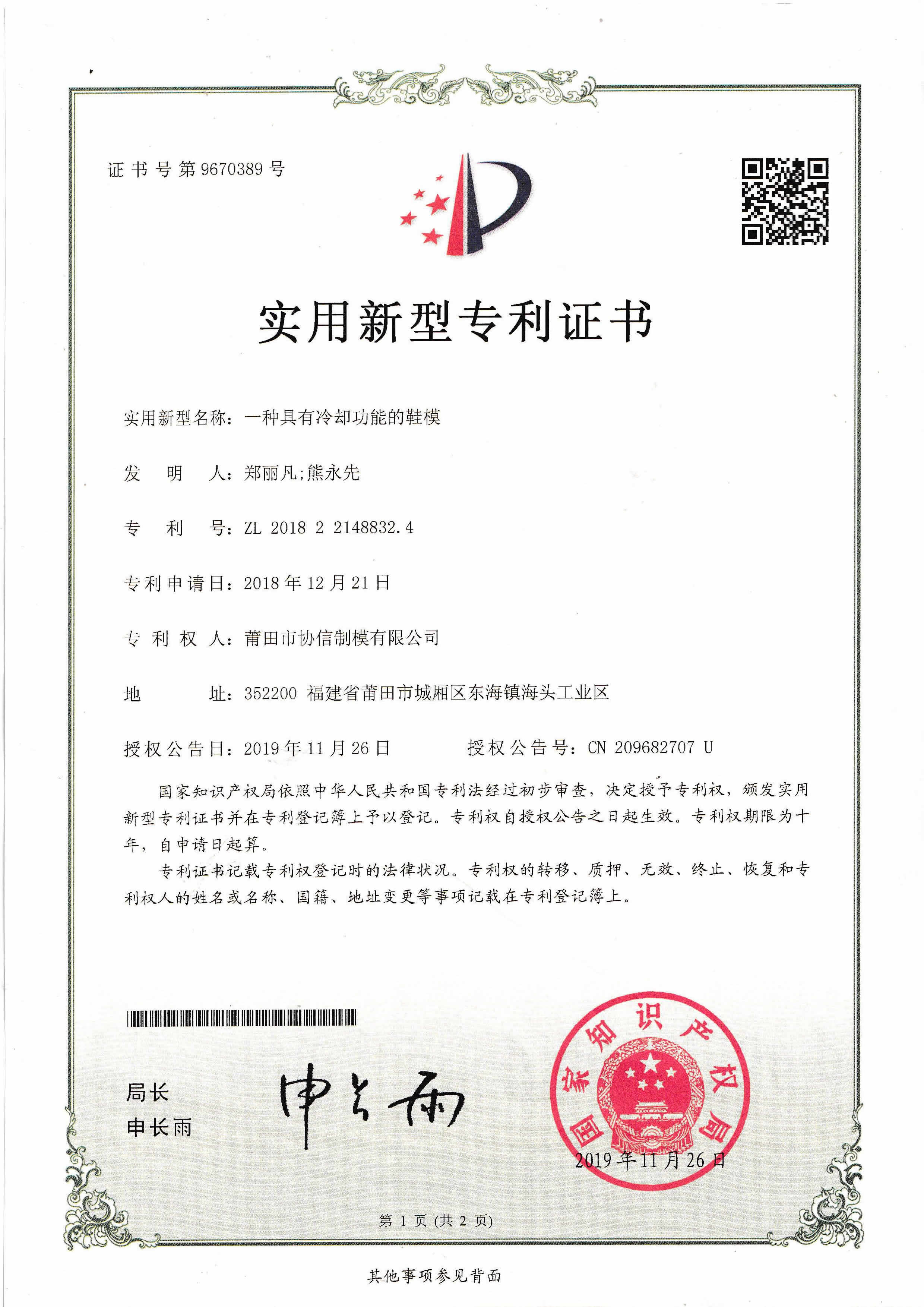 協(xié)信公司全景圖      莆田市協(xié)信制模有限公司成立于2003年9月10日,由香港協(xié)信香港協(xié)信國(guó)際貿(mào)易有限公司投資組建,注冊(cè)資金120萬(wàn)美元,是一家專業(yè)從事業(yè)鞋類模具設(shè)計(jì)、制造與銷售企業(yè),在行業(yè)內(nèi)享有盛譽(yù)。主要產(chǎn)品:RB、EVA、PVC、TPU、TR、TPR、ETPU、射出EVA等。公司月產(chǎn)能模具900多套,所有產(chǎn)品均采用國(guó)際質(zhì)量標(biāo)準(zhǔn),各個(gè)生產(chǎn)環(huán)節(jié)貫徹完善品質(zhì)檢查體系。