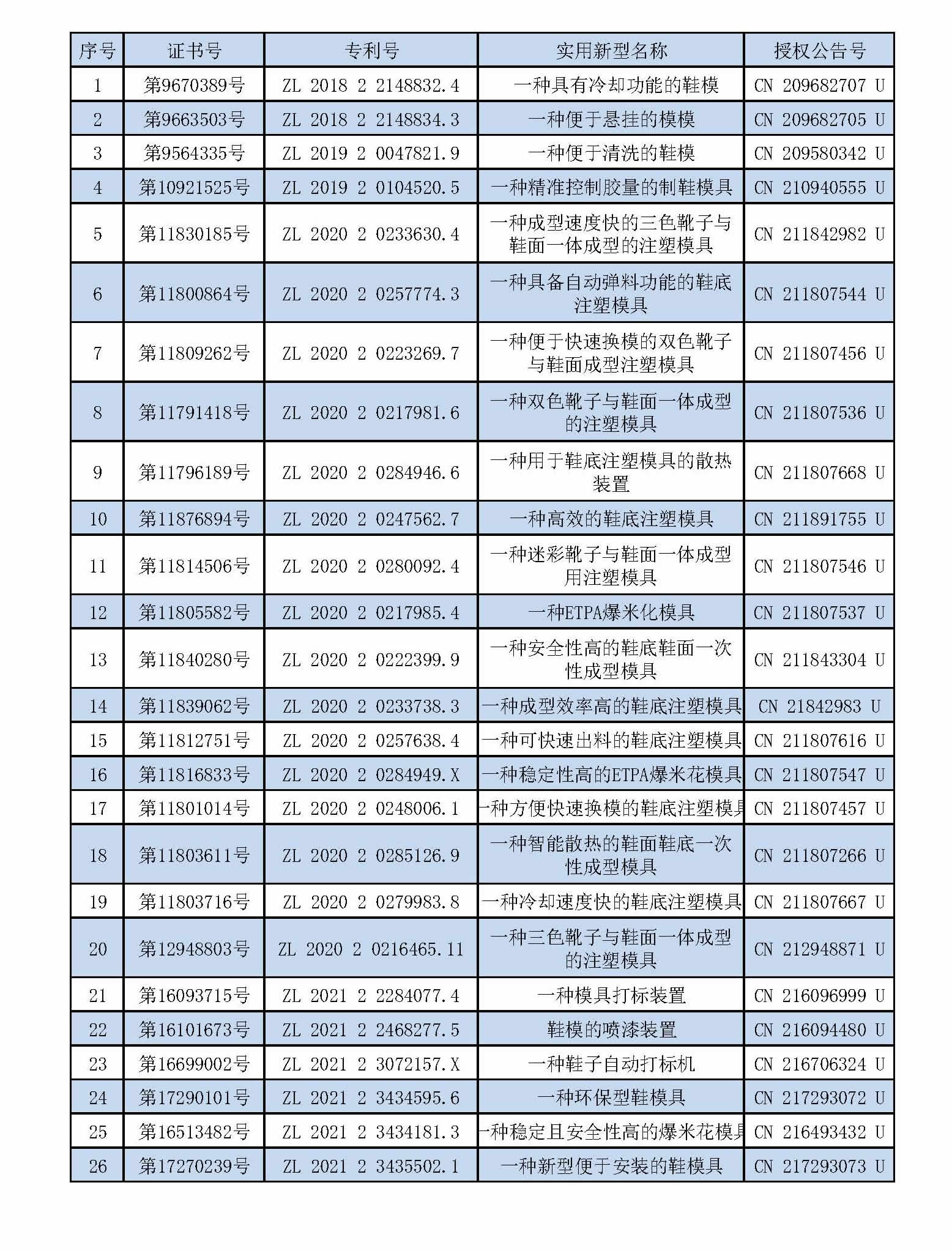 公司自成立以來(lái),始終堅(jiān)持以客戶需求為導(dǎo)向,依靠科技求發(fā)展,高度重視并且持續(xù)加大研發(fā)投入,組建技術(shù)中心,引進(jìn)先進(jìn)的技術(shù)開發(fā)設(shè)備:CNC高精度數(shù)控機(jī)床、光固化3D打印機(jī)設(shè)備、進(jìn)口平面大銑床,精密平面雕刻機(jī),單/雙頭放電機(jī)等各類高精度設(shè)備等近200多臺(tái)。通過(guò)多年的努力,目前公司已取得20項(xiàng)專利,并實(shí)現(xiàn)了專利成果轉(zhuǎn)化,為公司開拓市場(chǎng),提高核心競(jìng)爭(zhēng)力,提供了強(qiáng)有力的科技支撐。 公司以獨(dú)特的生產(chǎn)工藝和雄厚的開發(fā)力量,贏得了廣大制鞋企業(yè)的支持和信賴,產(chǎn)品目前主要銷往莆田、泉州、廈門、廣東省等地方,主要合作伙伴有李寧、迪卡儂、巴拉巴拉、銳步、斯凱奇、K.SWISS等世界知名品牌。協(xié)信以服務(wù)現(xiàn)有客戶、研發(fā)新型鞋類技術(shù)或非鞋類產(chǎn)品為主,致力于給所有中外客戶提供專業(yè)的品質(zhì)、高效的交期和一流的服務(wù)!